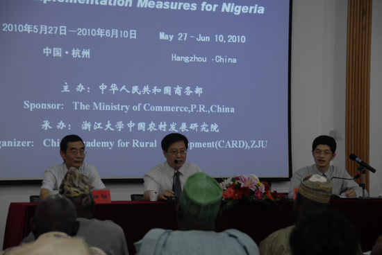 受国家商务部委托,由浙江大学中国农村发展研究院(“CARD”)承办,专门为尼日利亚举办的2010年援外项目“尼日利亚扶贫政策与执行措施研修班”,5月27日在浙大华家池校区CARD报告厅开班。有31位来自尼日利亚国家计委、国会委员会、总统特别助理办公室、国会参议院议长办公室及政府管理部门等的司、处级政府官员参加了研修班。“CARD”徐丽安副院长、陈志刚教授等出席了开班典礼。开班典礼由潘伟光系副主任主持。