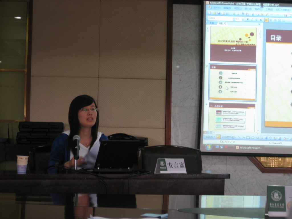 2010年全国中青年农经学者年会暨现代农业产业发展学术研讨会于5月21日—23日在武汉召开,会议由全国农业经济学会主办,华中农业大学经济管理学院承办。国内50多所高校和科研机构的150余名专家学者参加了会议。CARD中心研究生钟王黎应邀参加了此次会议,并作为专题论文报告人与各位专家学者进行了交流和讨论。本次会议收到投稿论文共265篇,入选167篇,专题讨论30篇。