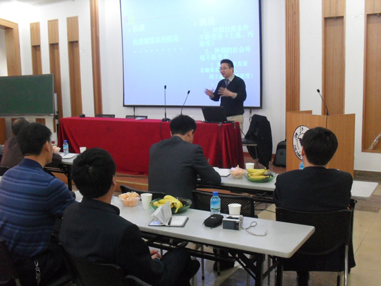 为进一步解放思想,跳出烟草看农业,推动山东潍坊市现代烟草农业建设步伐,11月12日,潍坊市烟草专卖局(公司)副调研员王喜功率领市局同志以及潍坊市下属各县烟草专卖局(公司)经理等14人造访CARD。中国农村发展研究院副院长徐丽安教授和CARD中国农民合作组织研究中心执行主任徐旭初教授、副主任郭红东教授接待了潍坊市烟草公司同志一行,并且12日上午在CARD多功能报告厅,徐旭初教授与郭红东教授分别就“烟农合作社建设与发展”与“现代烟草农业建设”的主题内容向潍坊市烟草公司同志做了专题报告。12日下午,徐丽安副院长陪同潍坊市烟草公司同志考察了杭州市余杭高新农业示范中心。