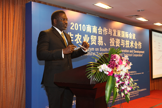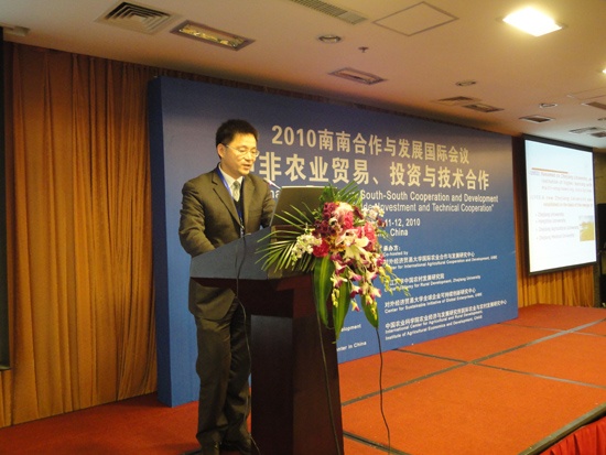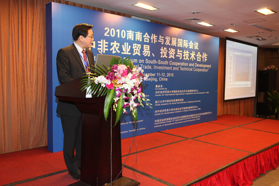 由浙江大学、对外经济贸易大学、国际食物政策研究所(IFPRI)、英国国际发展署(DIFD)联合主办,浙江大学中国农村发展研究院和对外经济贸易大学国际农业合作与发展研究中心承办的“2010(第二届)南南合作与发展国际会议——中非农业贸易、投资与技术合作”,于2010年12月10日-12日在北京成功举行。