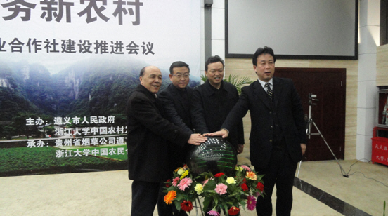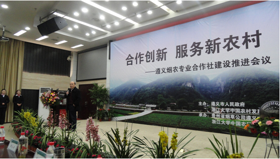 12月24日遵义市人民政府和浙江大学中国农村发展研究院(CARD)共同举办了遵义市烟农专业合作社建设推进会。遵义市副市长刘万兴在会上致辞,来自农业部、中国社科院、中国烟叶公司、浙江省农业厅、遵义市政府、烟草公司等部门的领导和专家,总共200多人参加了会议。在会上就烟农合作社发展的问题进行了系统的探讨。遵义市副市长刘万兴在会上高度评价了这几年浙江大学对遵义市社会经济发展的影响,尤其是中国农村发展研究院(CARD)在推进中国烟农专业合作社发展方面做出了很大的贡献,希望以后遵义市烟草公司和浙江大学中国农村发展研究院(CARD)紧密合作,共同推进遵义市现代烟草农业的发展。 在会上,遵义市人民政府副市长刘万兴、中国烟叶公司副总经理吴洪田、浙江大学中国农村发展研究院(CARD)院长黄祖辉教授和遵义市烟草专卖局局长(经理)丁伟一起举行了浙江大学中国农村发展研究院(CARD)遵义研发基地揭牌仪式。浙江大学中国农村发展研究院(CARD)郭红东和徐旭初教授一起参加并主持了会议。
