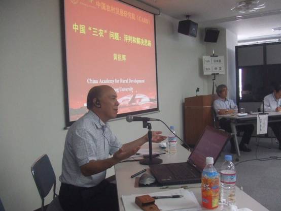 8月25-29日,应日本农林水产省政策研究所的邀请,我校中国农村发展研究院院长黄祖辉教授和经济学院顾国达教授访问日本,27日,两位教授在日本农林水产省政策研究所分别做了题为“中国三农问题:评判与解决思路”和“中国畜产业发展与饲料粮供给问题”的专题演讲报告,并回答了日本同行们感兴趣的问题。100多位来自政府、研究机构、企业等方面的日本官员、研究人员出席了听讲。