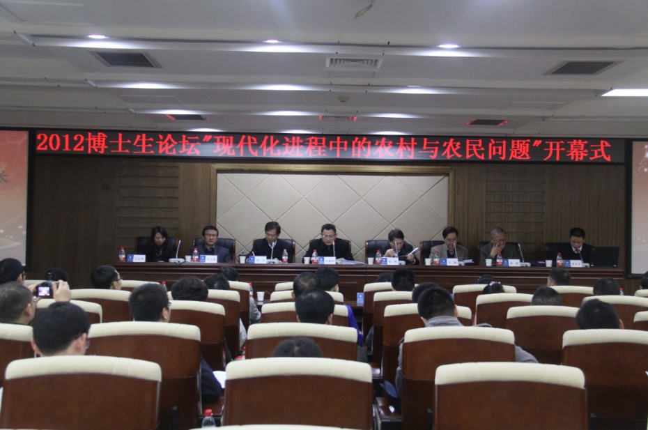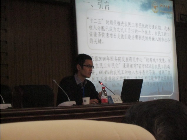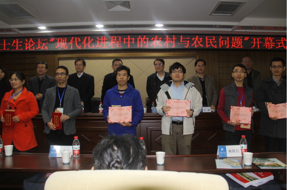 2012全国博士生论坛暨“现代化进程中的农村与农民问题”学术研讨会于11月11日在华中师范大学逸夫会议中心召开。来自浙江大学、中山大学、复旦大学、中国政法大学以及华中师范大学等高校的50余名博士生参加本次研讨会。本次会议不仅让博士生唱主角,还邀请著名学者做点评和讲座。CARD博士生卢海阳同学的投稿论文成功通过专家评审获邀参加会议,并在主会场做了题为“农民工的人力资本与工资关系”的专题报告。在本次博士论坛的50多篇参会论文中,最终由专家评选出8篇优秀论文,包括卢海阳在内的8位博士生获奖。华中师范大学副校长王恩科、中国农村研究院院长徐勇等为获奖者颁奖。
