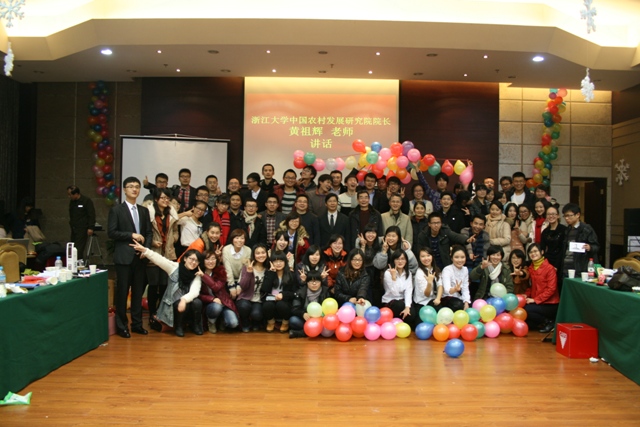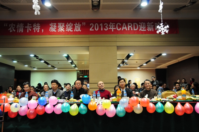 2012年12月28日晚,圆正.启真酒店求是厅灯光闪耀、流光溢彩。浙江大学中国农村发展研究院(卡特)“农情卡特,凝聚绽放” 2013迎新晚会在此隆重举行。卡特院长黄祖辉教授、原浙江省农办副主任、CARD特聘教授顾益康、管理学院党委书记应飚教授,副院长卫龙宝、徐丽安、钱文荣教授及其他CARD教职人员、管院学工办老师、农经本科、研究生齐聚一堂。绽放的鲜花,五彩的气球,卡特人脸上洋溢着自信与活力,喜悦的气息弥漫了整个求是厅。