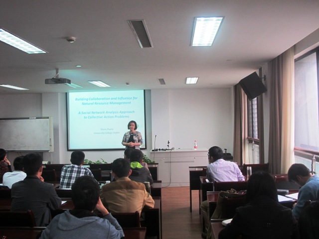 应农经系邀请,都柏林大学Diane Payne教授于2014年11月7号上午10:00~12:00在卡特多媒体报告厅为卡特师生作了一场题为“Building Collaboration and Influence for Natural Resource Management: A Social Network Analysis Approach to Collective Action Problems”的主题报告,报告会由韩红云教授主持,卡特师生参加了这次报告。