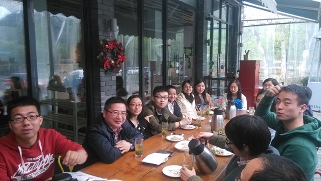 2015年4月13日下午13:00点,在郭红东教授和阮建青副教授的组织与带领下,卡特19位博士生和硕士生一行人聚集在启真酒店门口,整装待发,启程前往美丽又清新的梅家坞茶文化村,开展了一个主题为“学习·分享·联谊·欢乐”的联谊活动。