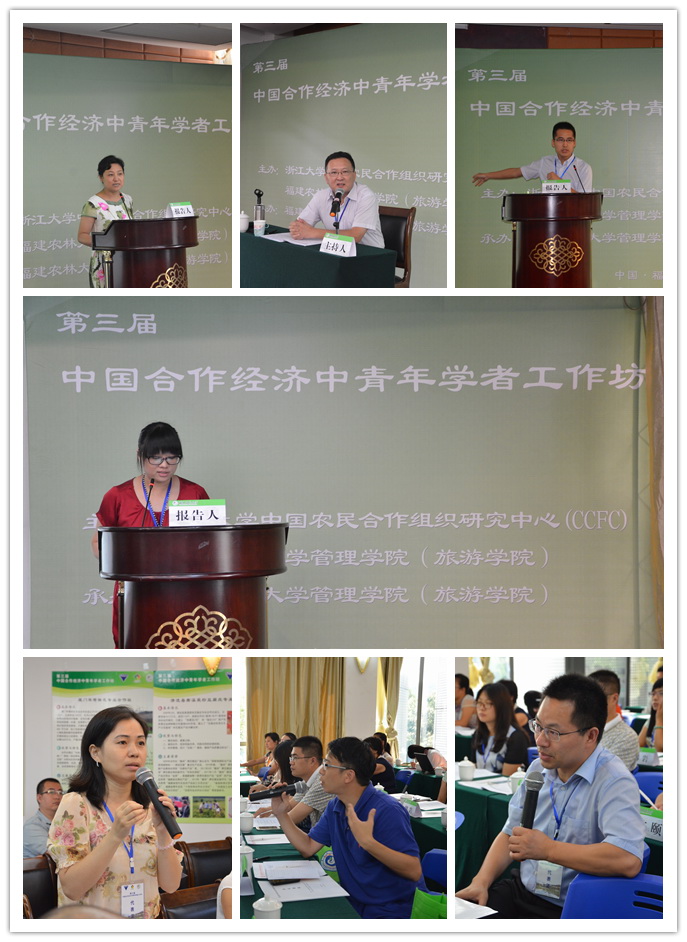 | 2015年8月20日至21日,由浙江大学中国农民合作组织研究中心(CCFC)和福建农林大学管理学院(旅游学院)联合主办,并由福建农林大学管理学院(旅游学院)承办的第三届“中国合作经济中青年学者工作坊”在福建农林大学顺利召开。除了有来自国务院发展研究中心、中国社会科学院、浙江大学、中国人民大学、中国农业大学、农业部管理干部学院、英国埃克塞特大学等40余名国内外科研院校的合作经济学者,本届工作坊还特邀浙江省龙游县龙珠畜牧专业合作社、四川省崇州市杨柳土地承包经营股份合作社和福建安溪县举源茶叶专业合作社负责人,以及福建农林大学管理学院新型职业农民大专班的优秀实践工作者,共有近200名与会代表分别就合作社多样化发展形态、《农民专业合作社法》修法、如何做规范的合作社案例研究等热点问题进行了热烈讨论。 8月20日上午,在开幕式之后的主题发言环节,来自中国人民大学农业与农村发展学院的孔祥智教授、中国社会科学院农村发展研究所的苑鹏研究员、中国农业大学人文与发展学院的任大鹏教授以及本中心主任徐旭初教授和浙江大学农村电商研究中心主任郭红东教授分别围绕“合作社的规范化建设”、“如何开展合作社的案例研究”、“合作社法修改”、“农业产业组织演化”和“互联网+合作社”等五个议题进行了主题发言。 8月20日下午到22日下午是专题研讨环节,共有15名中青年学者基于投稿论文分别就合作社的质性规定、合作社的治理逻辑、合作社的分配与绩效的关系、合作社的风险责任及承担、国外合作社案例研究的方法以及我国合作社修法等主题进行了发言。中青年学者还与实践工作者进行了互动,会场气氛活跃。在闭幕式上,本中心主任徐旭初教授进行了总结发言,不仅对本届工作坊的主要研讨主题一一进行了点评,而且也指出了当前国内合作经济研究还存在的四个“不够”问题,分别是研究不够深入、案例不够规范、学术交锋不够、视野不够开阔。此外,徐旭初教授还代表本中心发起了构建“中国农民合作社固定观测点跟踪调查网络”的倡议,希望国内学者精诚合作,积极打造学术共同体。 本次工作坊反响热烈,既在合作经济学者的思维碰撞中激发了新的研究思路,又在理论工作者与合作社实践工作者的交流中促进了理论与实践的互相启发,对进一步推动国内外科研机构的合作、提升我过合作经济研究水平具有重大意义。应声明,本届工作坊受到了国家自然科学基金重点学科群项目“农业产业组织体系与农民合作社发展研究”(项目编号:71333011)、国家自然科学基金面上项目“农产品供应链管理环境下农民专业合作社运营优化研究”(项目编号:71373063)、“农村改革发展协同创新中心”的大力支持。