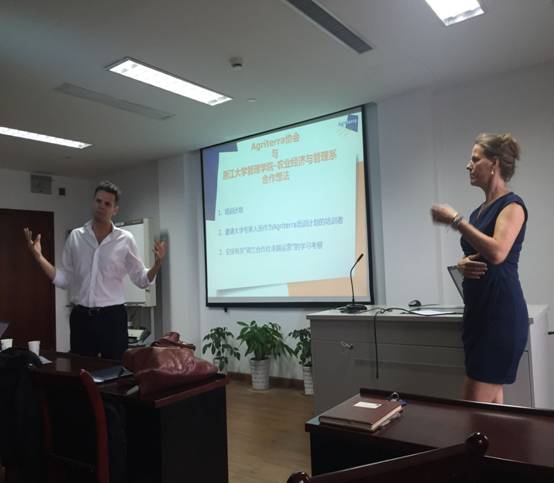 首先,Jan Heemskerk先生简要介绍了Agriterra及其使命,Agriterra是一个以反贫困为目的,从而致力于服务各个国家(尤其是发展中国家)农民组织的非政府组织,其总部位于荷兰,因而主要通过荷兰政府的资金支持来开展各种活动,无偿为各个国家的农民组织提供培训和咨询服务。接着,Gabriela Versteeg女士介绍了Agriterra在中国所开展的活动,目前他们已在云南、四川和重庆为多个农民合作社、农业协会、合作社联合社等提供培训和咨询,同时,Gabriela Versteeg女士说明了他们此行的目的,即希望通过与浙大管理学院农经系及卡特的合作,联合开展培训和咨询活动。郭红东教授感谢他们为中国农民所提供的帮助,并肯定了该合作具有很大的意义和可行性,双方就合作计划进行了讨论,达成了一些初步的操作路径,将在之后的沟通中进一步落实具体的活动。