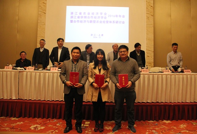 本届年会还对前阶段面向全省征集和筛选的36篇优秀论文进行评比和表彰,经专家们评审后最终评定优秀论文一等奖3篇、二等奖6篇、三等奖9篇,我院胡伟斌博士生和其导师黄祖辉教授合著的论文《农业合作社的形成:基于农业自然风险的视角》获得了一等奖;刘强博士生和其导师杨万江教授合著的论文《农户土地经营规模对我国水稻生产成本效率的影响分析》获得了二等奖。