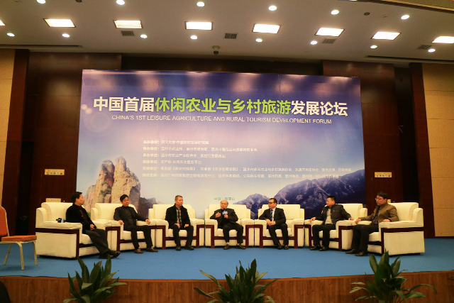 嘉宾对话环节,黄祖辉院长、占金荣副处长、谢炳超董事长、温州市农业局副局长王志旭、温州市旅游局副局长杜成威、温州四雁荡山旅游发展集团副总经理朱齐鹤、浙江大学旅游系主任周玲强,就目前休闲农业和乡村旅游的相关问题进行探讨。首先,认为需加强推进中国旅游资源开发,尽快完善产权制度,需明确对自然资源的产权的界定,这有利于发展休闲旅游,并保障农户的利益。其次,乡村旅游是景区旅游的极大补充,要让乡村旅游和社会效益紧密结合,强调产品吸引力、营销营销力和组织凝聚力。最后,谢董强调农产联的服务平台紧紧围绕三农,为广大消费者提供免费服务,以公益性质进行推广,这有利于解决整合资源、优化结果、供需对等等问题。