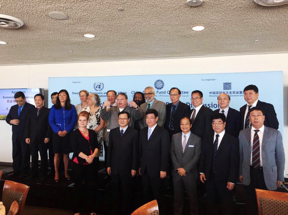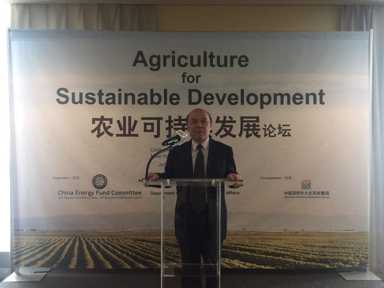 由联合国经济与社会事务部、中华能源基金委员会共同主办,深圳市大生农业集团合办的“农业可持续发展论坛”7月6日在联合国总部举行。来自联合国经济与社会事务部、各国常驻联合国代表、中美两国农业领域专家教授、企业代表共150余人参加了当天的会议。