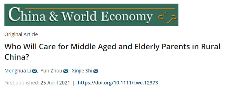 Li, M., Zhou, Y., and Shi, X.*, 2021, Who Will Care for Middle Aged and Elderly Parents in Rural China? China & World Economy.