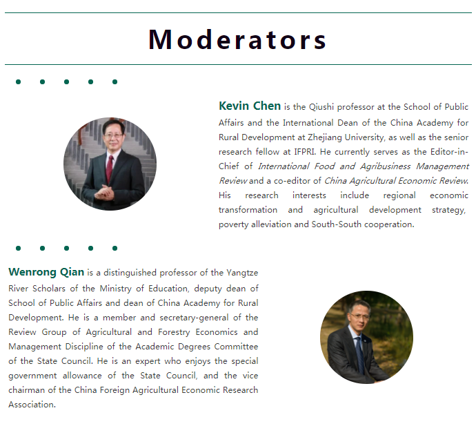 Moderator: Wenrong Qian (Dean, China Academy for Rural Development, Zhejiang University)