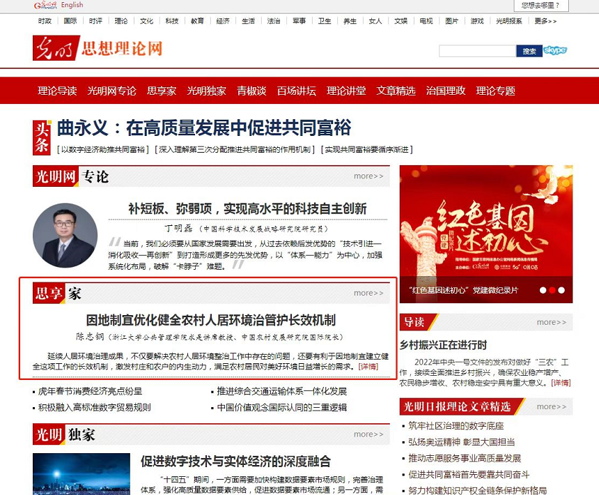 2月28日,光明网理论频道在首页刊登文章《因地制宜优化健全农村人居环境治管护长效机制》,文章作者为陈志钢(浙江大学公共管理学院求是讲席教授、中国农村发展研究院国际院长、国际食物政策研究所资深研究员);侯玲玲(北京大学现代农学院研究员);李冬青(中国农业科学院农业经济与发展研究所博士生)。以下为文章转载。