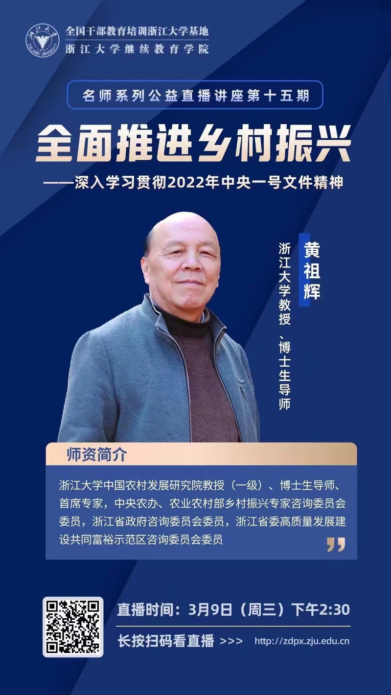 直播预告|黄祖辉:全面推进乡村振兴 —— 深入学习贯彻2022年中央一号文件精神
