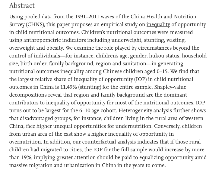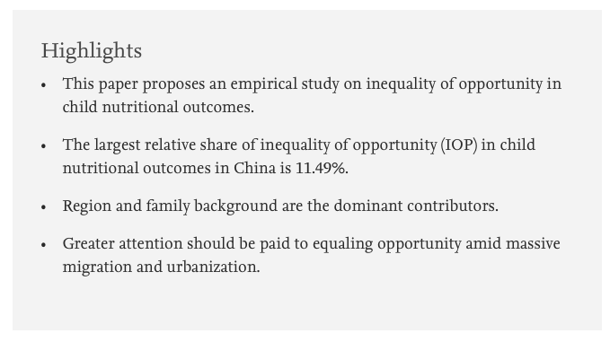 原文链接:Liu X, Shi X, Chen K (2022) Inequality of opportunity in children ’ s nutritional outcomes in China. Glob. Food Sec.33, 100635.https://doi.org/10.1016/j.gfs.2022.100635