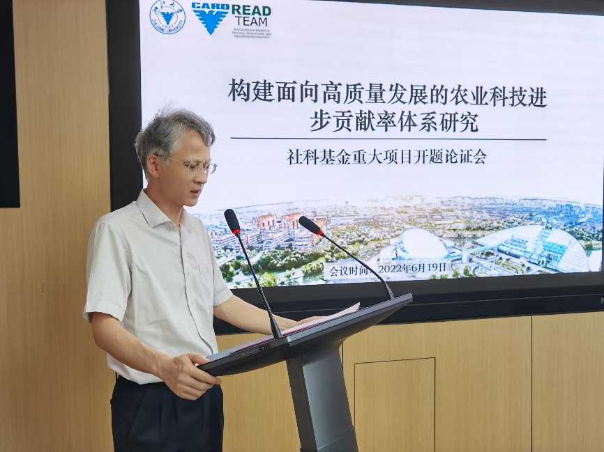 2022年6月19日下午,由浙江大学中国农村发展研究院(浙大“卡特”)龚斌磊研究员主持的国家社科基金重大项目“构建面向高质量发展的农业科技进步贡献率体系研究”开题论证会在浙江大学公共管理学院901会议室顺利召开。浙江大学社会科学研究院常务副院长张彦教授和院长助理史文磊教授代表学校主管部门参加了本次会议。会议由长江学者特聘教授、浙江大学中国农村发展研究院院长钱文荣教授主持。