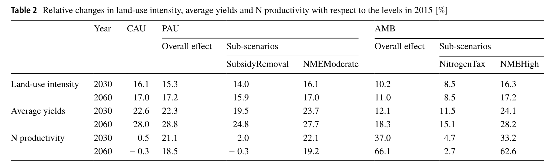 从单个政策或措施来看,提高农业养分管理效率有助于提高耕地生产力,并减少耕地扩张,对环境改善和粮食安全具有协同效应,也对实现中国化肥零增长和农业高质量发展目标具有决定性意义。面向生产投入端的取消化肥补贴政策对减少化肥施用的效果较小,而面向非期望产出的氮税和碳税政策对温室气体减排效果显著,但会引致较高的粮食价格和较低的粮食自给率。