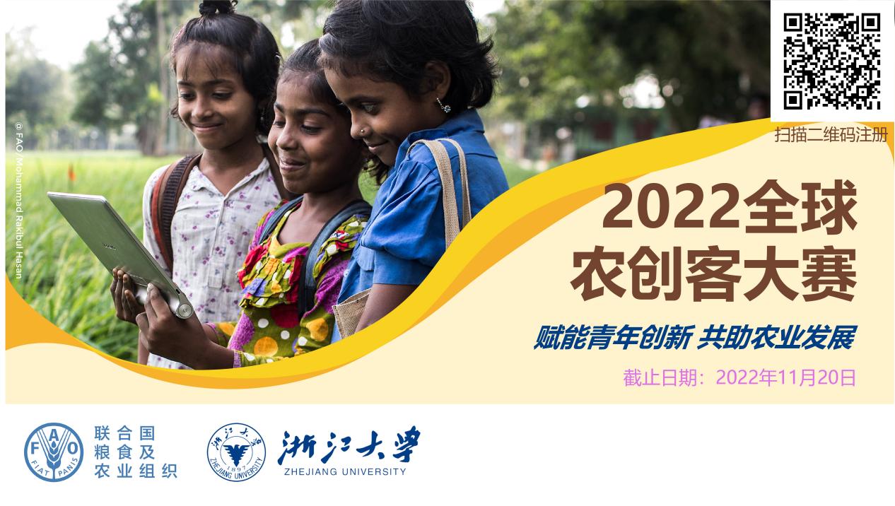 近日,2022年全球农创客大赛正式启动。本届大赛由联合国粮食及农业组织、浙江大学与杭州市人民政府共同主办,中国农业农村部对外经济合作中心提供支持。大赛主题为:加速农业体系转型,助力实现“四个更好”。