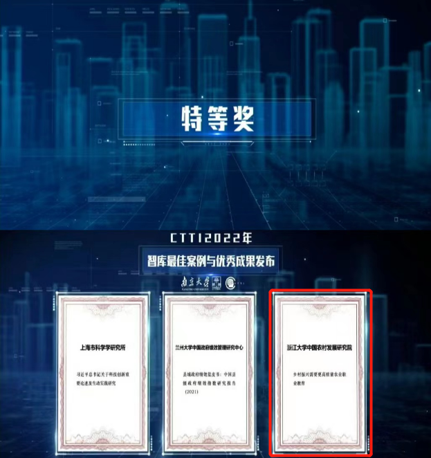 论坛发布了CTTI智库报告(2022)、CTTI高校智库百强榜、CTTI来源智库优秀研究成果。浙大卡特入选“CTTI2022年度高校智库百强榜”A+,卡特院长钱文荣教授智库成果《乡村振兴需要更高质量农业职业教育》获“CTTI2022年度优秀成果” 特等奖。