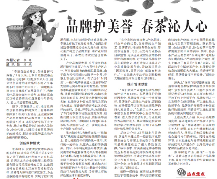 受邀在《中国知识产权报》上发表两篇专题文章《品牌护美誉 春茶沁人心》、《厚植商标沃土 绽放品牌之花》,探讨农业品牌发展与保护之路。