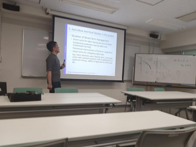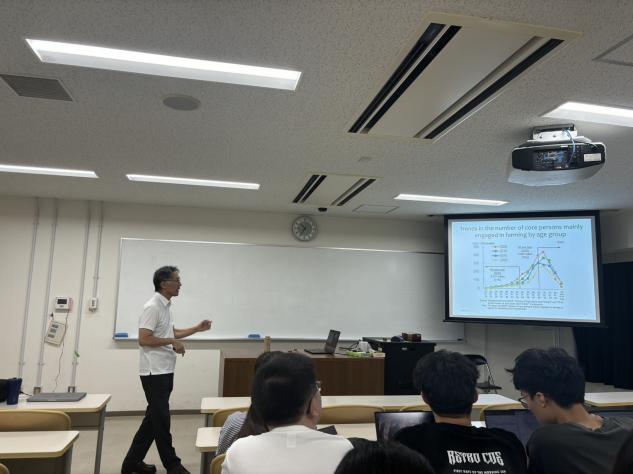7月26日上午,松下秀介教授以“日本农场管理的动态及农场计划的理论与应用”为题,围绕当前及未来日本农业与乡村社会的发展趋势,深入分析了日本农业管理面临的机遇与挑战。报告重点探讨了智慧农业与数字农业在推动农业现代化过程中所面临的制度、技术与人才瓶颈,并系统介绍了农场计划在农业经营与管理中的理论基础与实际应用。松下教授通过案例分析与模型讲解,展现了科学合理的农场计划如何助力农业资源的优化配置与农场绩效的提升,进一步加深了学生们对现代农业管理体系的理解与认识。