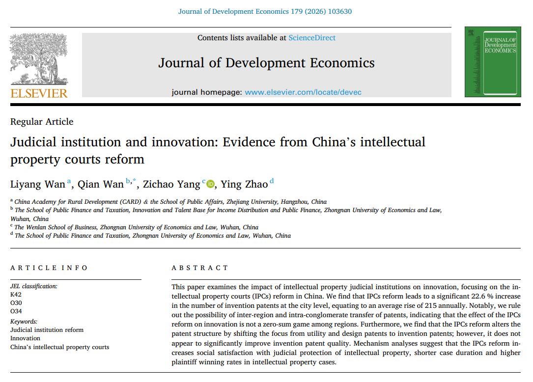 编辑:浙江大学中国农村发展研究院 作者: Liyang Wan(浙江大学,第一作者), Qian Wan*(中南财经政法大学,通讯作者), Zichao Yang(中南财经政法大学), Ying Zhao(中南财经政法大学) 时间:2025-09-29 访问次数:10