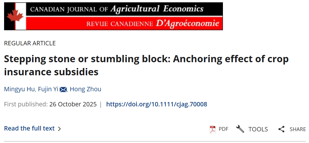 编辑:浙江大学中国农村发展研究院 作者: Mingyu Hu, Fujin Yi x, Hong Zhou 时间:2025-10-29 访问次数:10