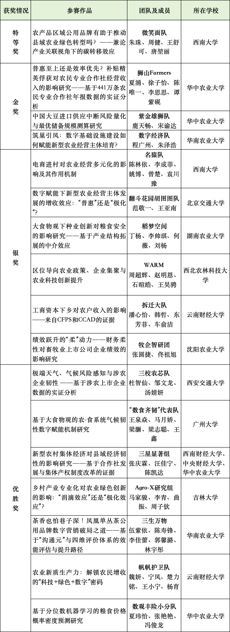 本次大赛的成功举办,不仅为青年学子提供了一个展示才华的舞台,也为推动我国“三农”领域大数据应用研究和创新发展注入了新的活力,在学界、政府部门和企业界产生了广泛而积极的影响,进一步促进了各方在“三农”大数据领域的交流与合作,为扎实推进乡村全面振兴提供更多的智力支持。
