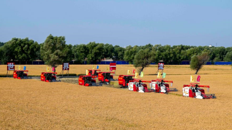 Unmanned harvesters operate at a farm in Heilongjiang Province in northeast China, September 23, 2025. /Xinhua
